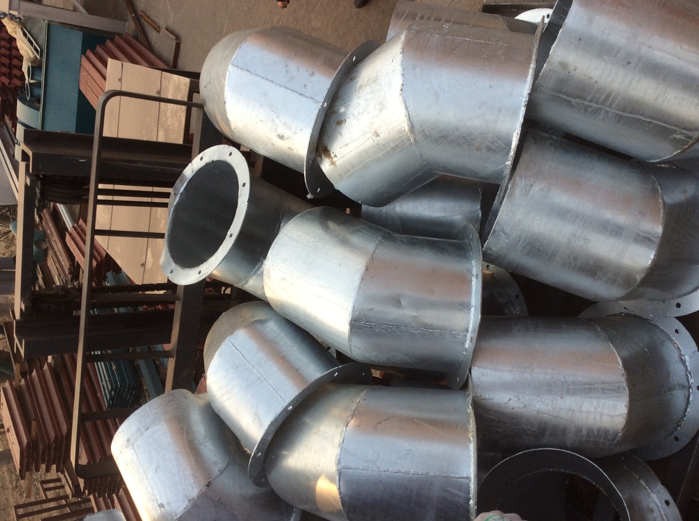 安裝時,根據(jù)倉徑的大小,采用多個吊裝架,吊裝架上固定一個手動葫蘆,使用特制的吊板用螺栓固定在倉壁墻板上,緩緩提升倉體。采取自上而下的安裝方式,即先安裝頂蓋、上層墻板,然后在裝中層墻板,再裝下層墻板,后將整個倉固定在基礎(chǔ)上。筒倉的構(gòu)件全部采用高強度螺栓連接,安裝方便、迅速、可靠。