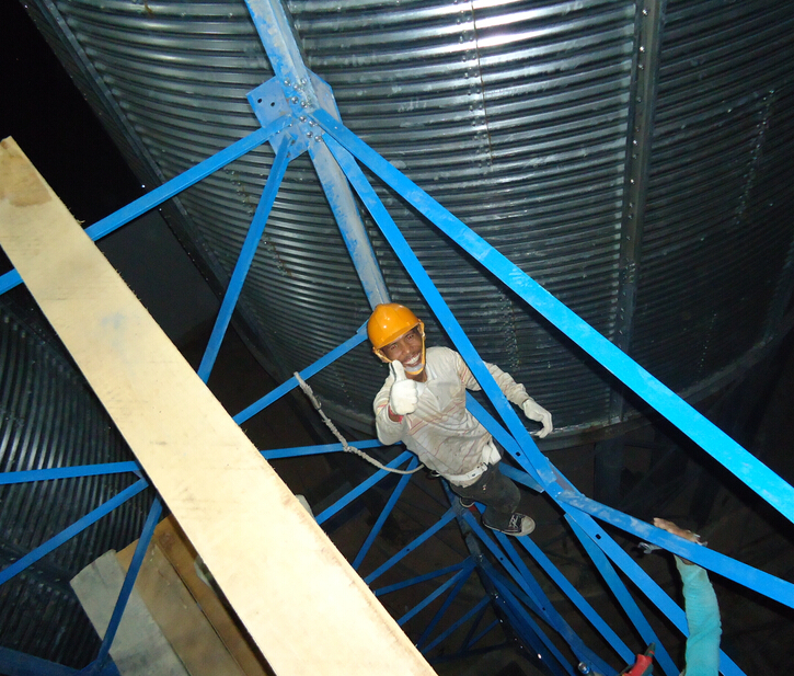 1、通風系統(tǒng),倉頂安裝自然通風窗、引風機,錐底安裝鼓風機,引流空氣到倉內(nèi)循環(huán),保護糧食不受潮,極大的保證了倉內(nèi)糧食的質(zhì)量。