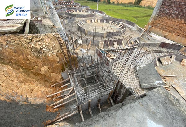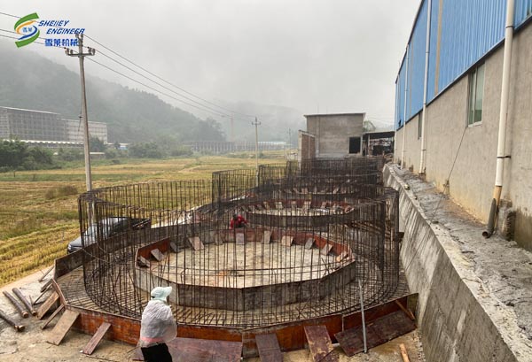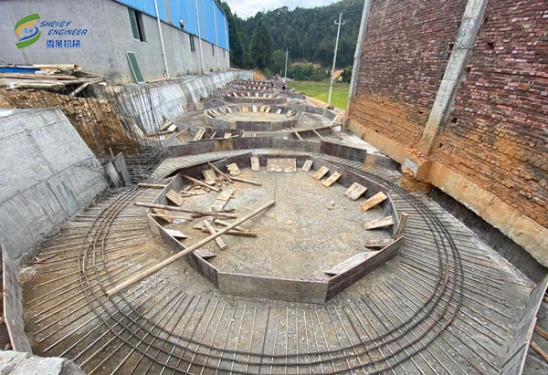 此項目為福建地區養豬場玉米和豆粕倉儲項目。萬丈高樓從地起,地基的好壞不僅關系到房屋能否長期居住,以使房屋不至變形、開裂、沉降等,好的地基還能使建好后的房屋更有儀式感和立體感。糧倉的建設亦是如此。鋼板倉廠家雪萊公司的地基圖紙都是經過專業的設計院設計并出具到客戶手中的,其中需要客戶提供地勘報告,然后設計院根據地勘報告因地制宜的設計出立筒倉地基圖紙,從而全方位的保證鋼板倉的安全建設和使用。