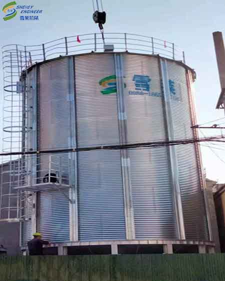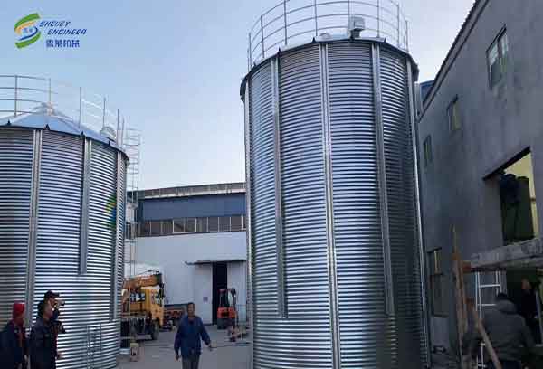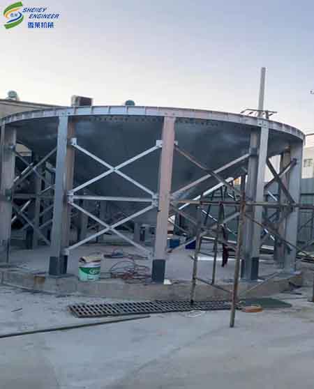 濟寧塑料顆粒廠200噸鋼板倉安裝工作緊張而有序