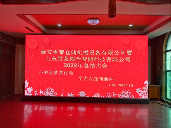 同心筑夢,未來啟程!1月17日在泰安瑞庭酒店,雪萊糧倉召開了泰安雪萊倉儲機(jī)械設(shè)備有限公司暨、山東雪萊糧倉智能科技有限公司2022年總結(jié)大會(huì),雪萊糧倉董事長靳傳麗,生產(chǎn)部總經(jīng)理張玉峰,安裝部總經(jīng)理劉大云,以及來自雪萊糧倉生產(chǎn)、技術(shù)、行政、財(cái)務(wù)、采購、銷售等各個(gè)部門的領(lǐng)導(dǎo)出席了此次年會(huì)。雪萊人用辛勤的雙手在2022年書寫下壯美華章,以實(shí)際行動(dòng)助力糧食高質(zhì)高效的存儲與安全,推動(dòng)中國農(nóng)業(yè)持續(xù)發(fā)展的使命。2023年雪萊糧倉將繼續(xù)砥礪前行,踔厲奮發(fā)!