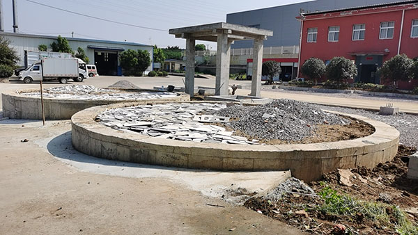 筒倉基礎采用圈梁式設計,滿堂彩鋼筋籠結構,木板支模后焊接預埋件,灌裝混凝土即可。等待混凝土干燥后,回填中心土,養護后,基礎表面及周圍找平,打水泥處理,即可進場安裝。